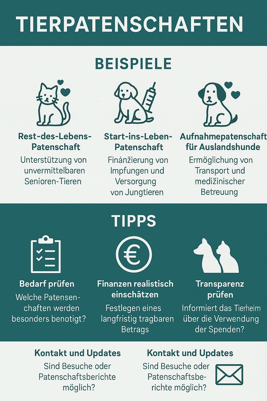 - Bedarf prüfen: Viele Tierheime veröffentlichen Listen mit Tieren, die dringend Unterstützung benötigen.